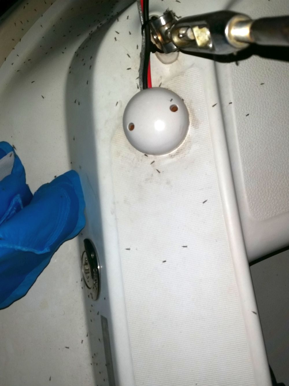 Als dann endlich die Gewitter abgezogen waren, haben wir Besuch von Millionen Fliegen bekommen. Interessanterweise scheinen sich die Fliegen nicht an die gängige Meinung der Wissenschaftler zu halten – sie haben sich zu Tausenden rund um unsere LED-Beleuchtung versammelt. Binnen kürzester Zeit hatten wir dann auch im Schiff unglaublich viele dieser Fliegen – an Schlaf war dann gar nicht mehr zu denken. Überall surrte es und ohne literweise Anti-Brumm wären wir am nächsten Morgen komplett blutleer gewesen.