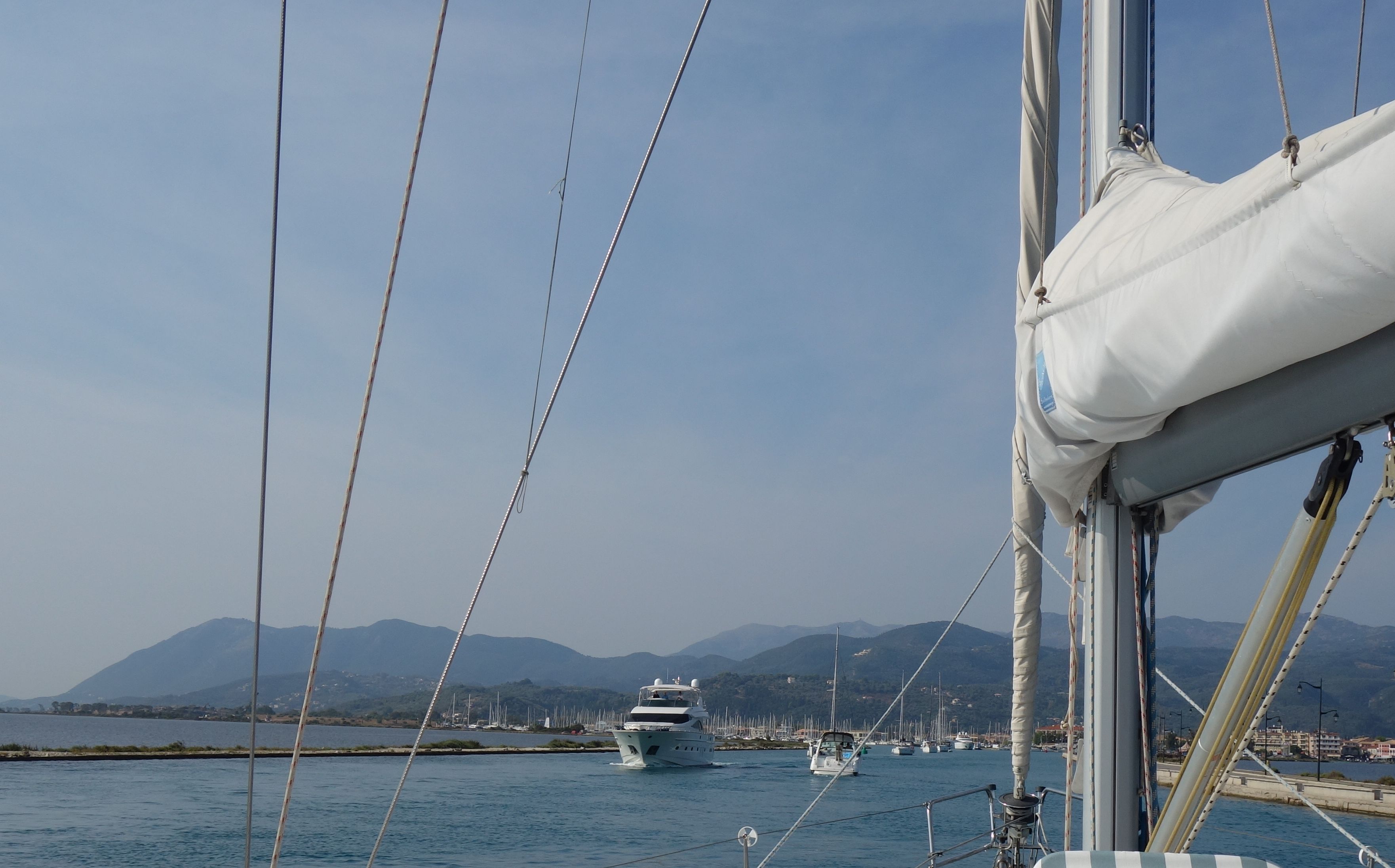Die zweite Nacht im ambrakischen Golf war kein bisschen ruhiger – und am frühen Morgen hat uns ein Fischer dann auch noch unmissverständlich klar gemacht, warum die Bucht nicht in unserem Küstenhandbuch aufgeführt ist. Er kreiste mit seinem Boot und einem nervigen Aussenborder um uns herum und holte seine Netze ein. Und weil die Gewitterneigung nicht weniger wurde, haben wir uns nach dem frühen wecken durch den Fischer weiter in den Süden aufgemacht – und den Kanal von Lefkas angesteuert. Hier gibt es ruhige Liegeplätze – und nach 4 ziemlich schlaflosen Nächten brauchen wir vor allem eins: Schlaf.