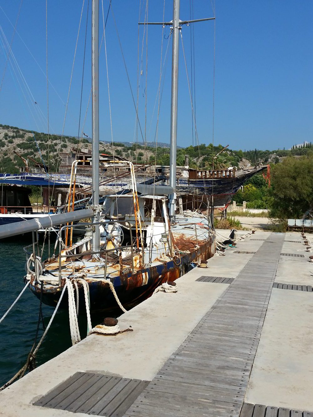 In die Marina werden viele Boote und Yachten gefahren, um sie dort sterben zu lasssen. Wie Skelettteile ragen Rümpfe in den Himmel, viele an Land liegende Yachten sind derart verrottet, dass man sicher weiß: Diese Yacht wird nie wieder schwimmen. Und auch im Wasser liegen einige Gerippe, zum Teil fest vertäut mit Ruckdämpfern. Man hört beinahe, wie die Stahlyachten rosten.