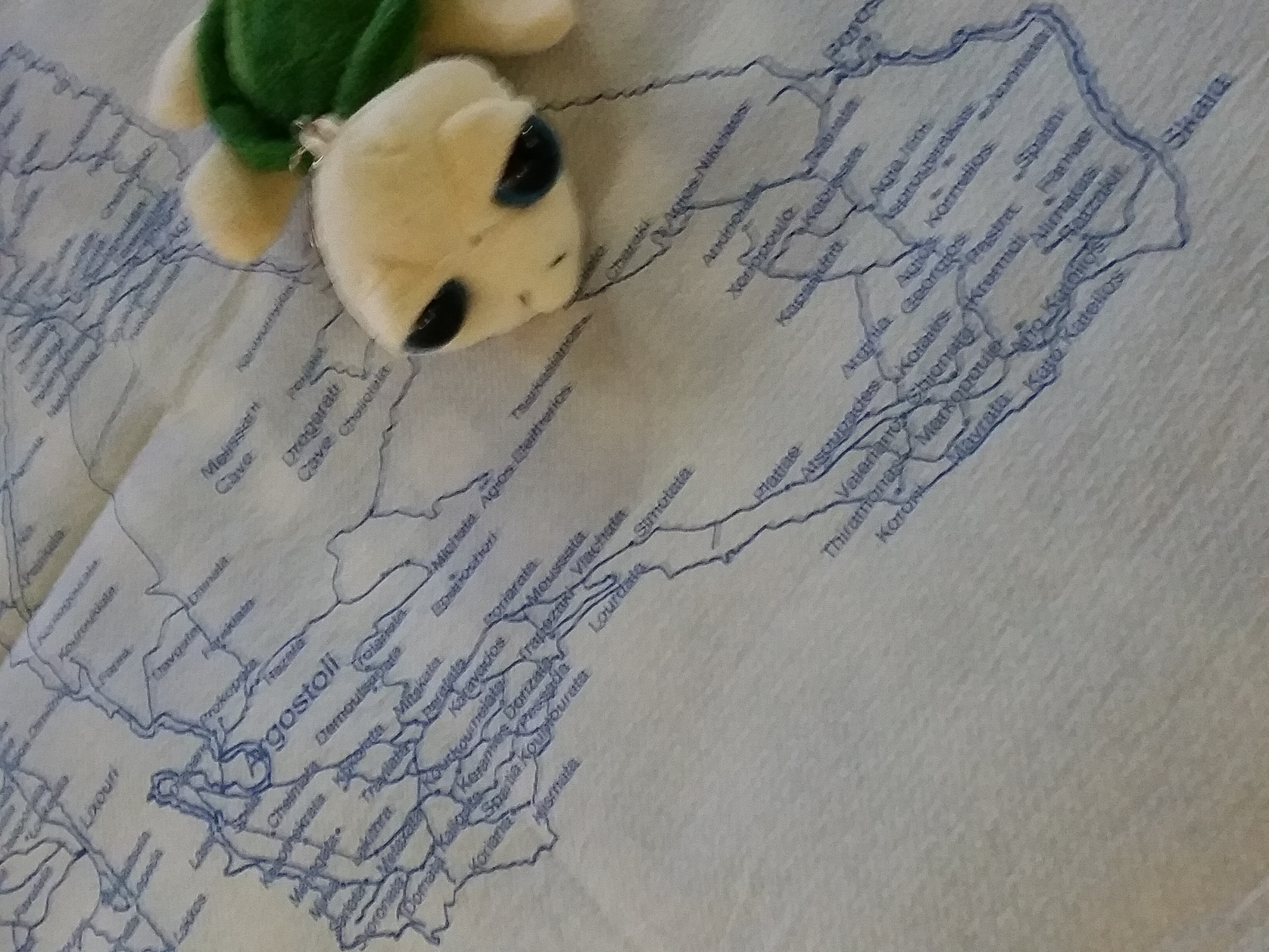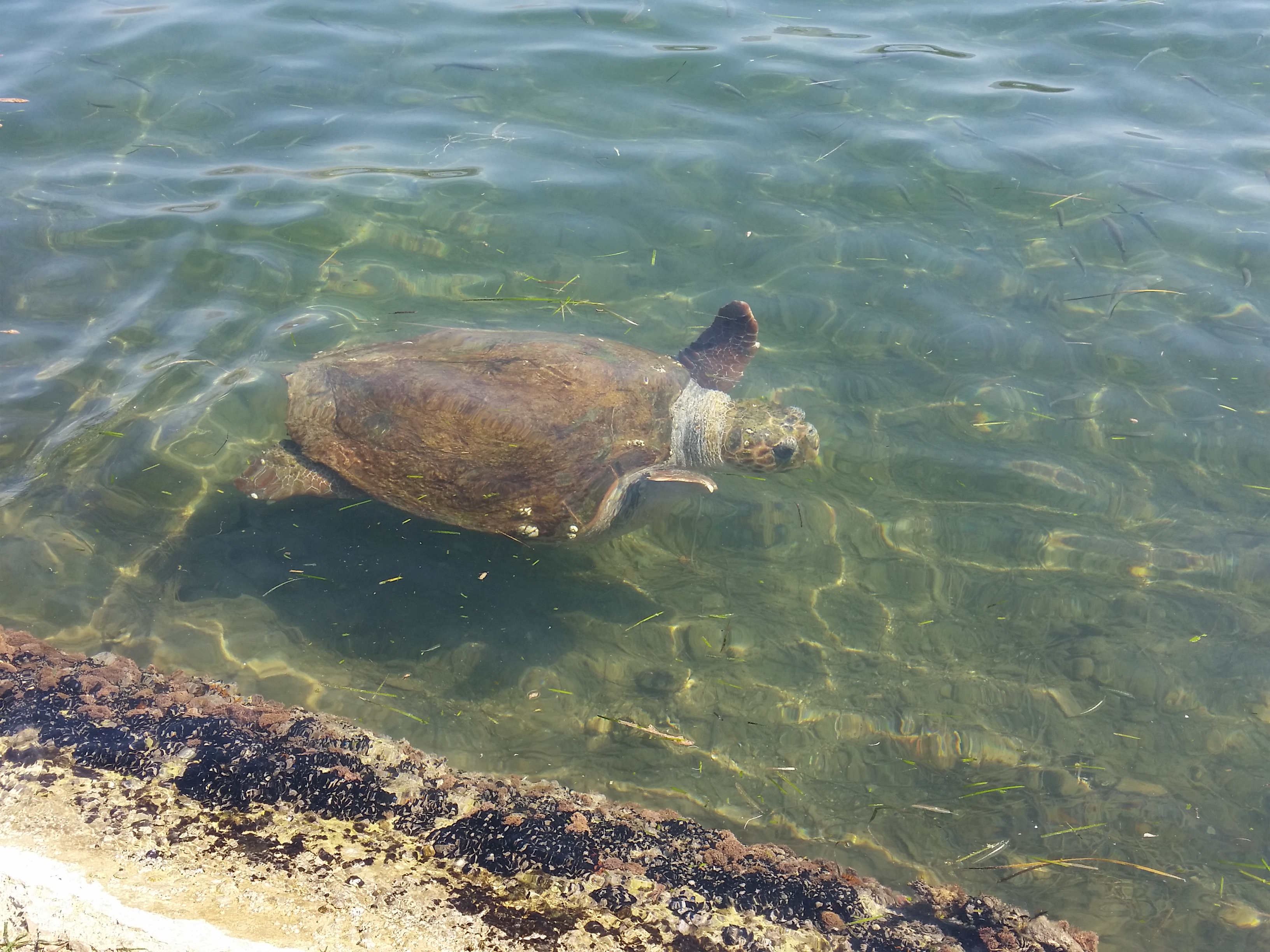 In Argostoli gibt es eine Kolonie unechter Karett-Schildkröten (Caretta Caretta) – und die schwimmen immer wieder im Hafenbecken herum. Eine Umweltorganisation mit vielen freiwilligen Helfern zählt die Schildkröten und untersucht das Verhalten – deswegen weiß ich auch, dass wir eine Schildkröte gesehen haben, die 33 Jahre alt ist und Barbara heißt 🙂