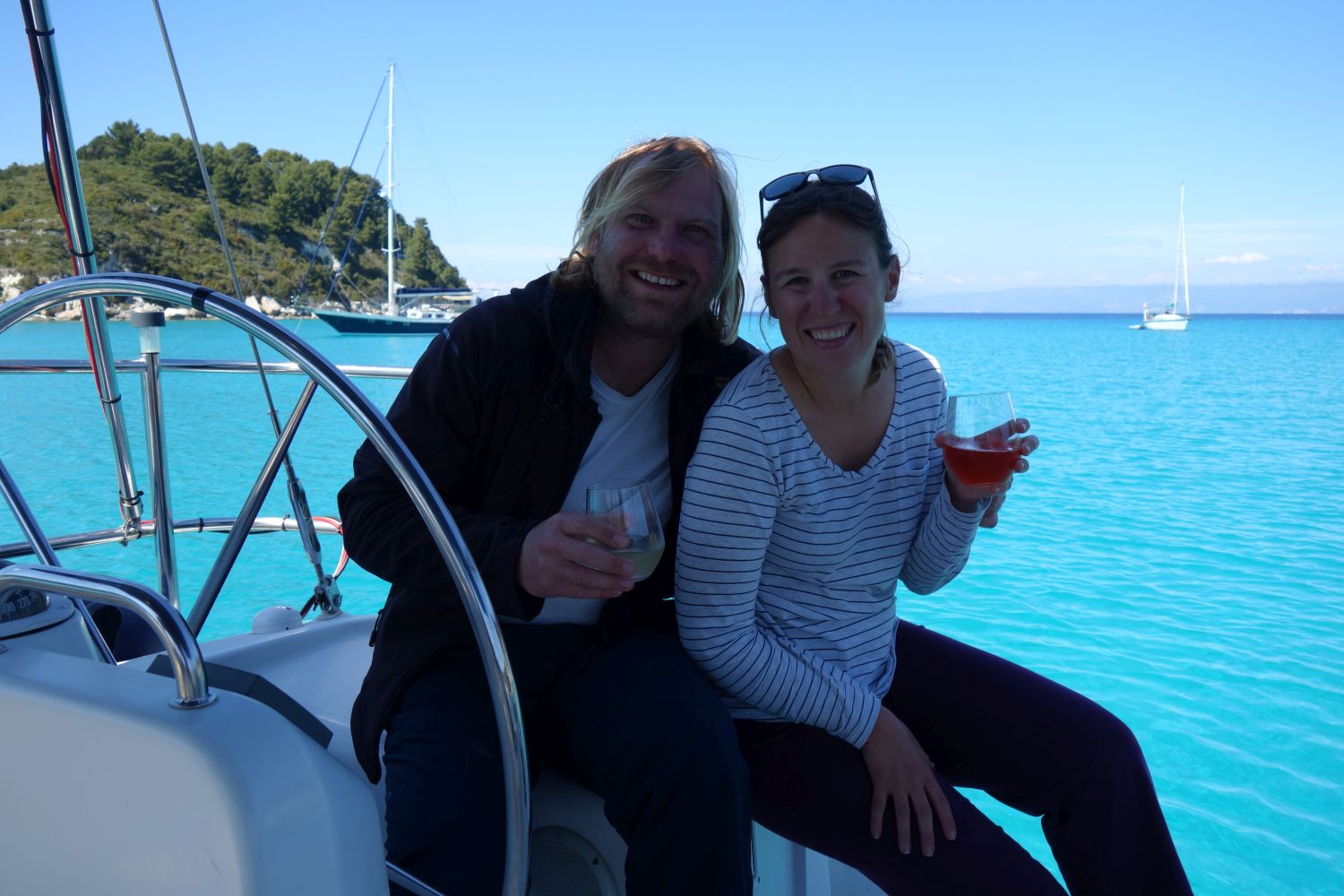 3 Stunden vor Lakka ist dann plötzlich der Wind weg – aber das ist gar nicht so schlimm, wir wollen ja warmes Wasser. Es ist übrigens erst Dienstag, kurz vor Mittag. So motorsegeln wir die letzten 15 Seemeilen nach Lakka. Und warten darauf, dass uns jemand kneift, um uns aus dem Traum zu wecken. Um 14:30 stehen wir mit 15 anderen Booten ruhig und sicher in der wunderschönen Ankerbucht von Lakka.