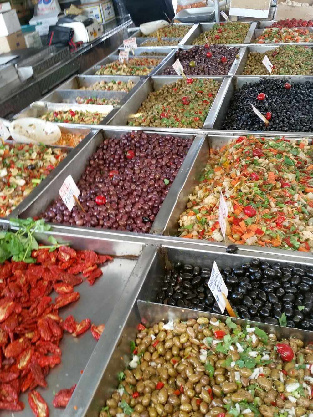 Nach einem strammen Fußmarsch und gewissen kurzen Unsicherheiten zwischendurch (der Markt hat sich gut versteckt) bin ich dann zusammen mit Rick und Mary im Shopping-Himmel für Marktfans angekommen. Von Socken und Unterhosen über Messern, Pfannen und Bilderrahmen, Handtaschen und Schuhen es gibt alles, was das Herz begehrt. Die Lebensmittel-Stände sind auch nicht zu verachten – 1 kg eingelegte Oliven kostet hier 3,50€. Hach. Einen Nachteil hat das Überangebot allerdings: Ich wusste gar nicht, was ich will und und meine Beute war dann nur ein Sorte Oliven und 8 verschiedene sizilanischen Biscotti.