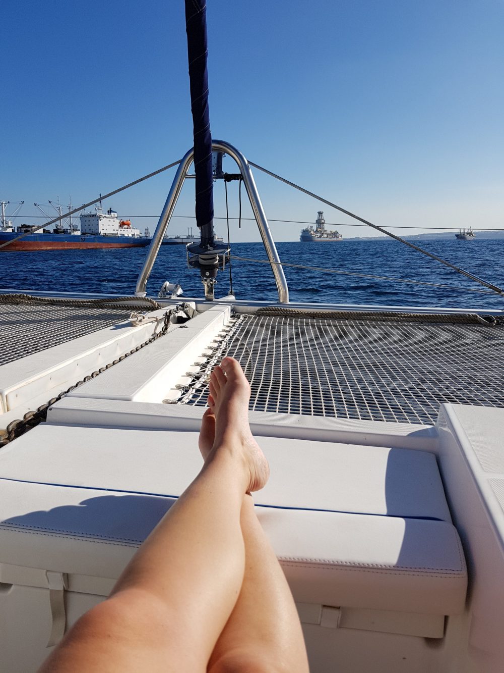 Irgendwann an Tag 9 oder 10 habe ich überlegt – wie sieht denn so ein typischer Tag aus? Wenn ich den beschreibe, klingt das total seltsam. Meistens bin ich um kurz nach halb 7 aufgewacht (aufgeweckt durch meinen Freund, den Wecker im verfeindeten Iphone). Je nach Wetter gabs dann zum Frühstück nen Segelwechsel, ne Muffinbackaktion oder Matheunterricht mit Hazel. Kaffee mochte ich gar nicht mehr – das war aber nur eine kurze Erscheinung, kaum zurück in Deutschland schmeckt mir mein Frühstückskaffee schon wieder sehr gut. Nach den vormittäglichen Aufgaben bin ich meist kurz nach dem Mittagessen in die Koje – schlafen sollte man, soviel man kann, man weiß nie, wie die Nacht wird. Die Nachmittage sind meistens sehr schnell vergangen, die Sonne scheint weiter im Süden tatsächlich schneller unterzugehen.