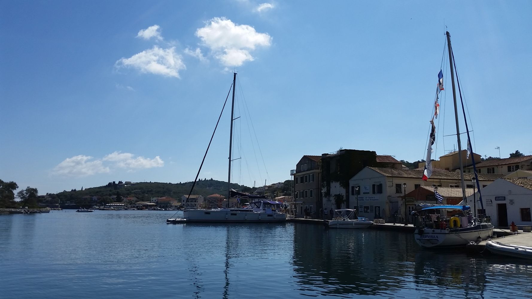 Und dann irgendwann (wir haben schon nicht mehr daran geglaubt) gings auch wieder bergab. Dieses Mal nicht so sanft wie bergauf, sondern richtig steil. In Gaios waren wir letztes Jahr mal mit dem Boot – ein netter Ort, der aber schon fast im Winterschlaf ist.