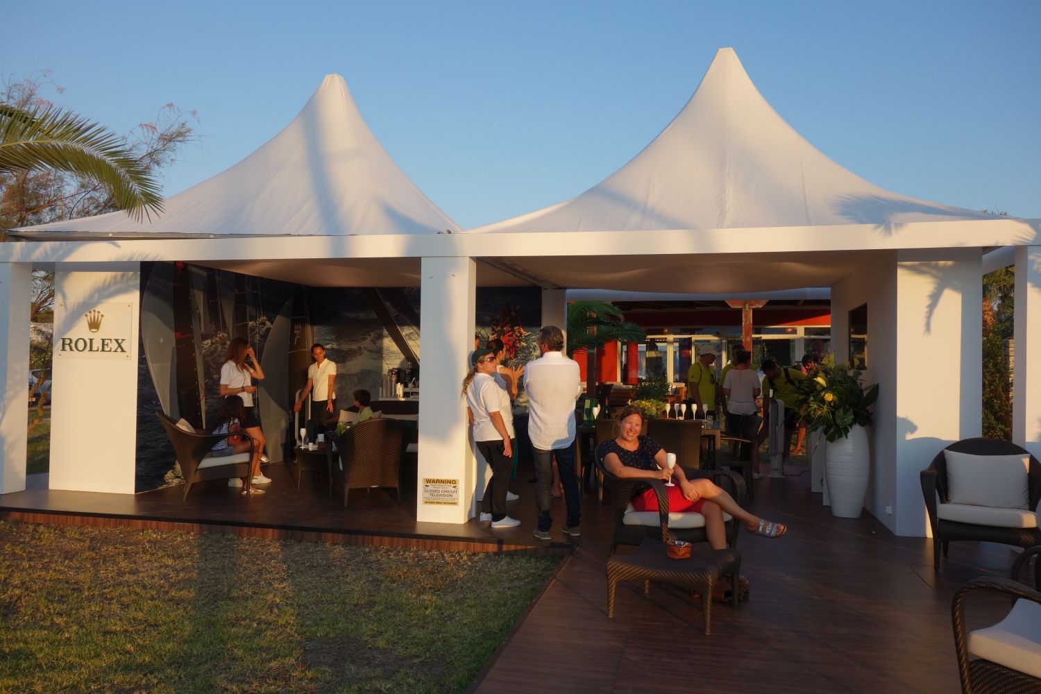 Abends haben wir dann weiter Regattaluft geschnuppert – bei Rolex wurden wir auf einen Champagner eingeladen, vor der Übergabe der Tagespreise gab es Fingerfood, das von Luxushotels zur Verfügung gestellt wurde. Nur die Bierversorgung war etwas mau. Doch Segler finden da ein Lösung: Um einen Teil der Momo-Crew bildete sich recht schnell eine große Menschentraube mit Seglern aus den verschiedensten Teams. Die Momo-Crew hatte nämlich zur Preisverleihung einen Kühlrucksack mit Bier mitgenommen.