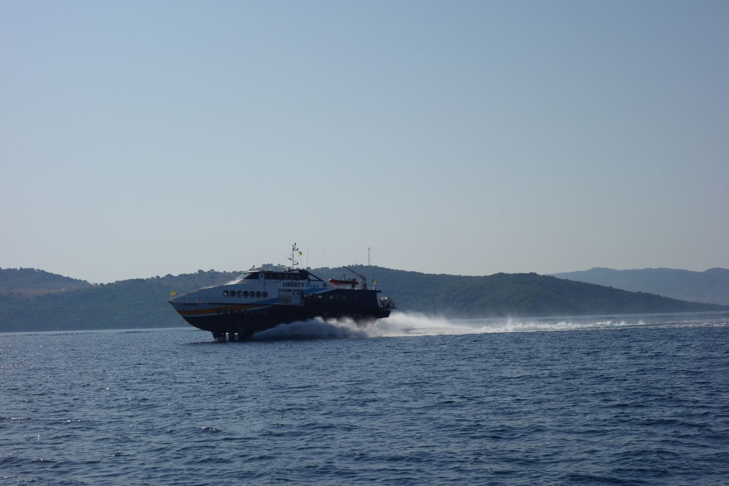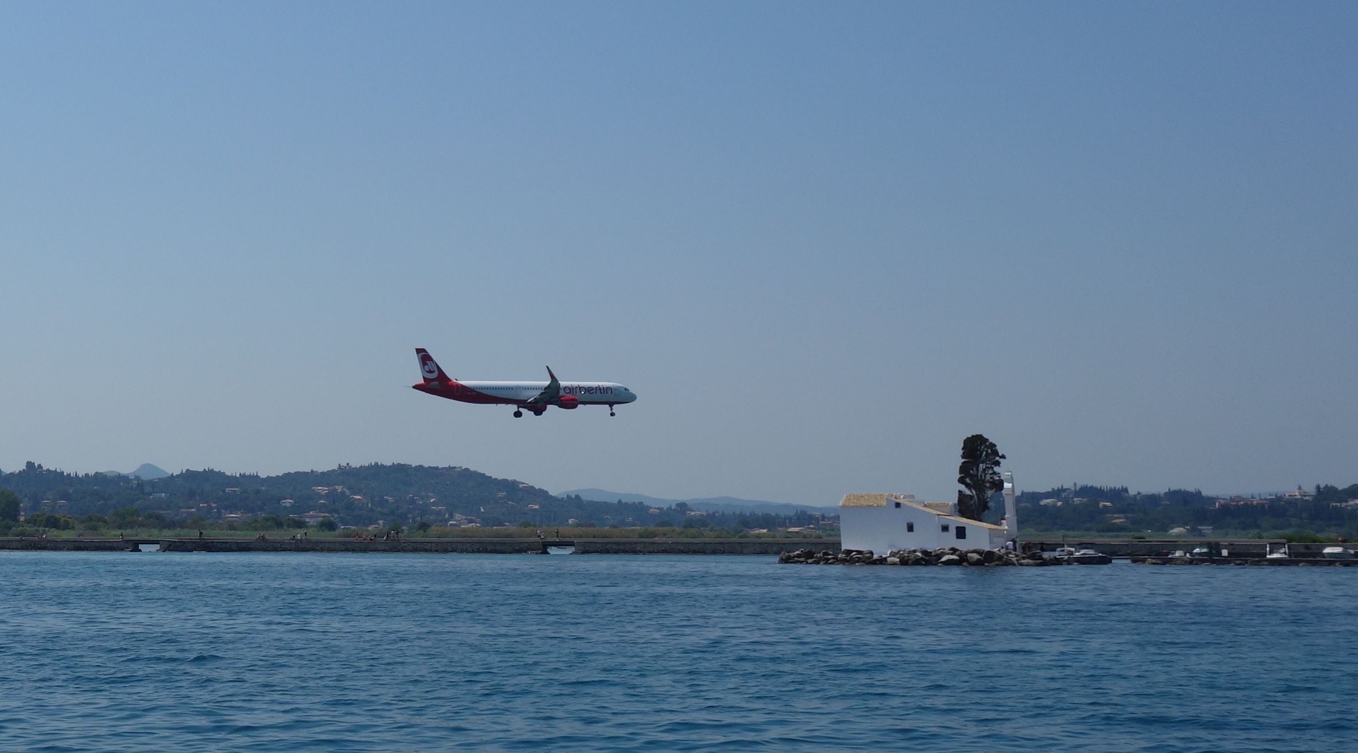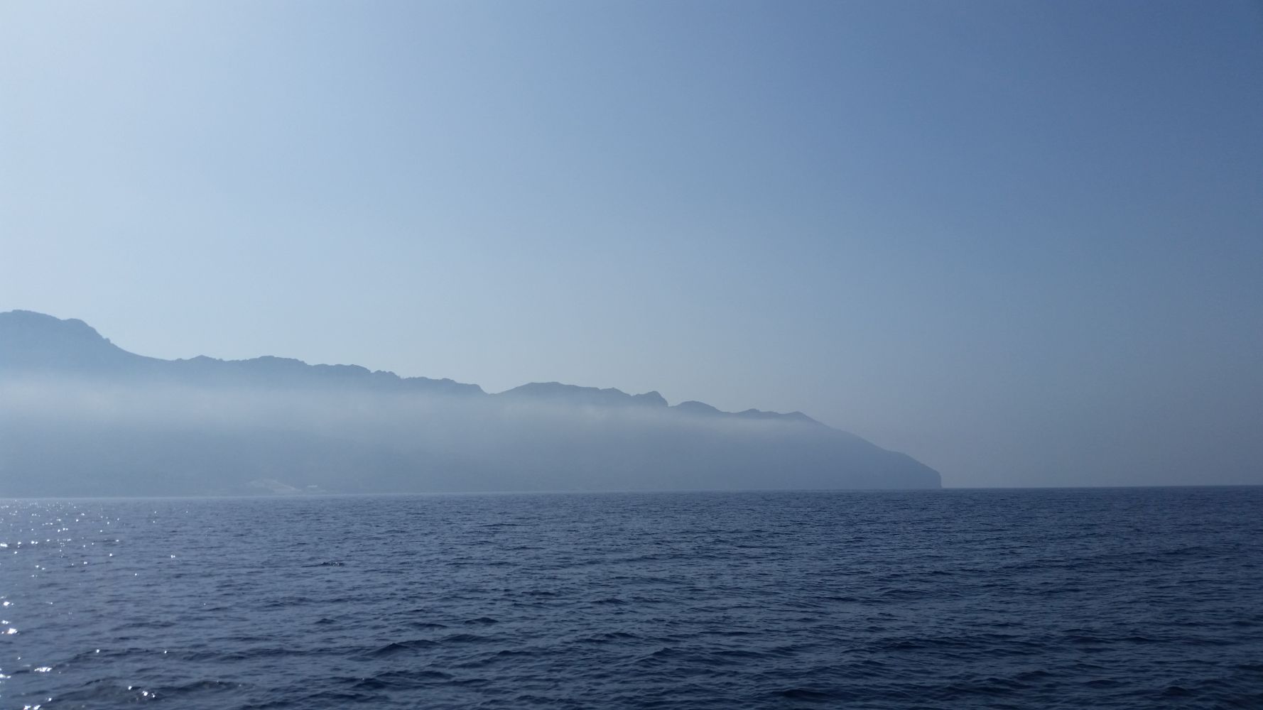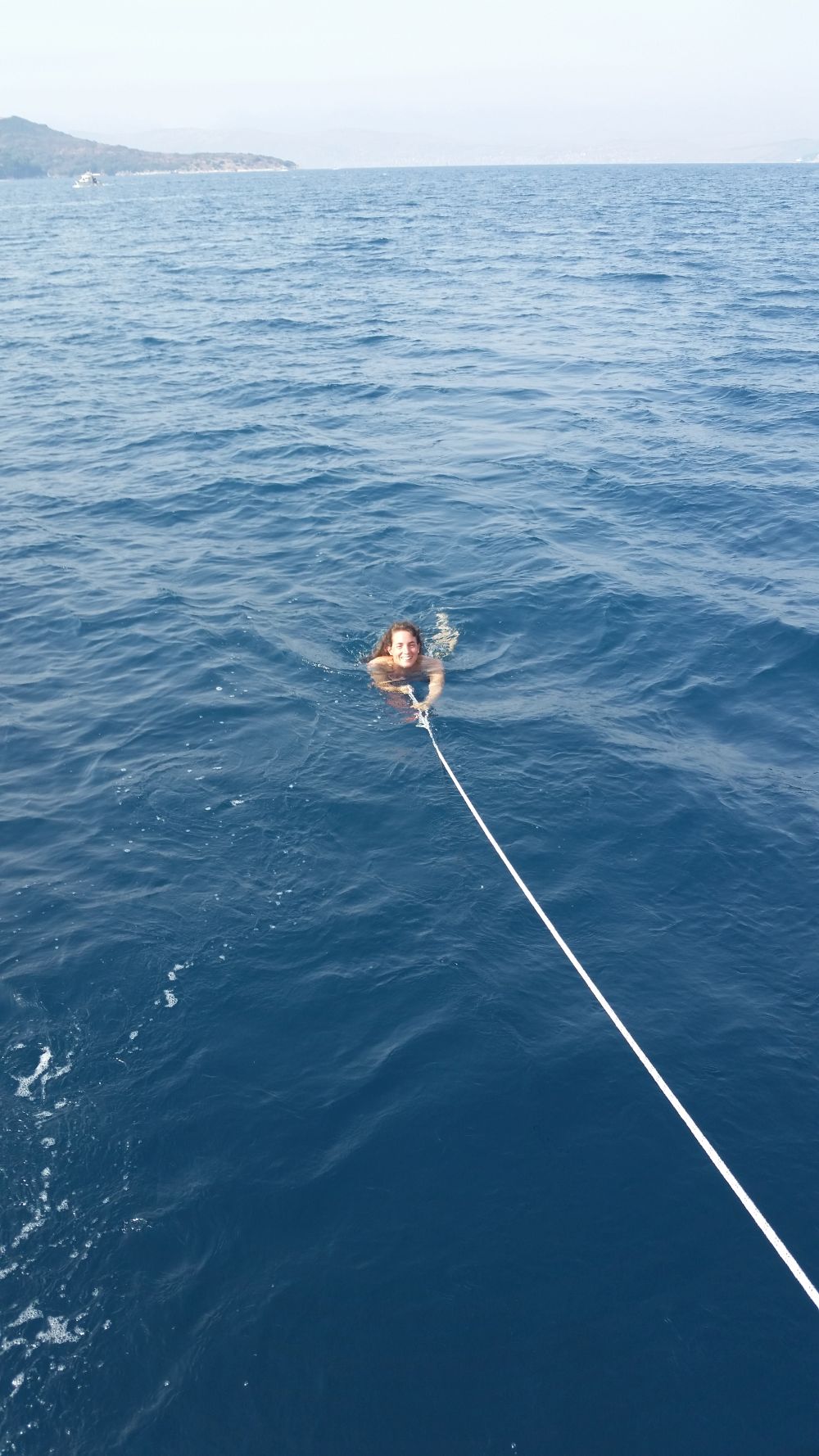 Der letzte Segeltag zurück bot dann endlich mal einen angenehmen Vorwindkurs. Aus Nebelschwaden tauchten die nahegelegenen Inseln und auch Korfu auf. Und nicht nur Nebel versperrte die Sicht aufs Land: Durch die anhaltende Dürre der letzten Monate ist die Waldbrandgefahr extrem hoch und leider ist nun auch auf Korfu ein Waldbrand ausgebrochen. Immer wieder konnten wir kreisende Löschflugzeuge sehen – zuerst nur in der Luft, dann auch beim Wassertanken in der Bucht vor Ipsos.