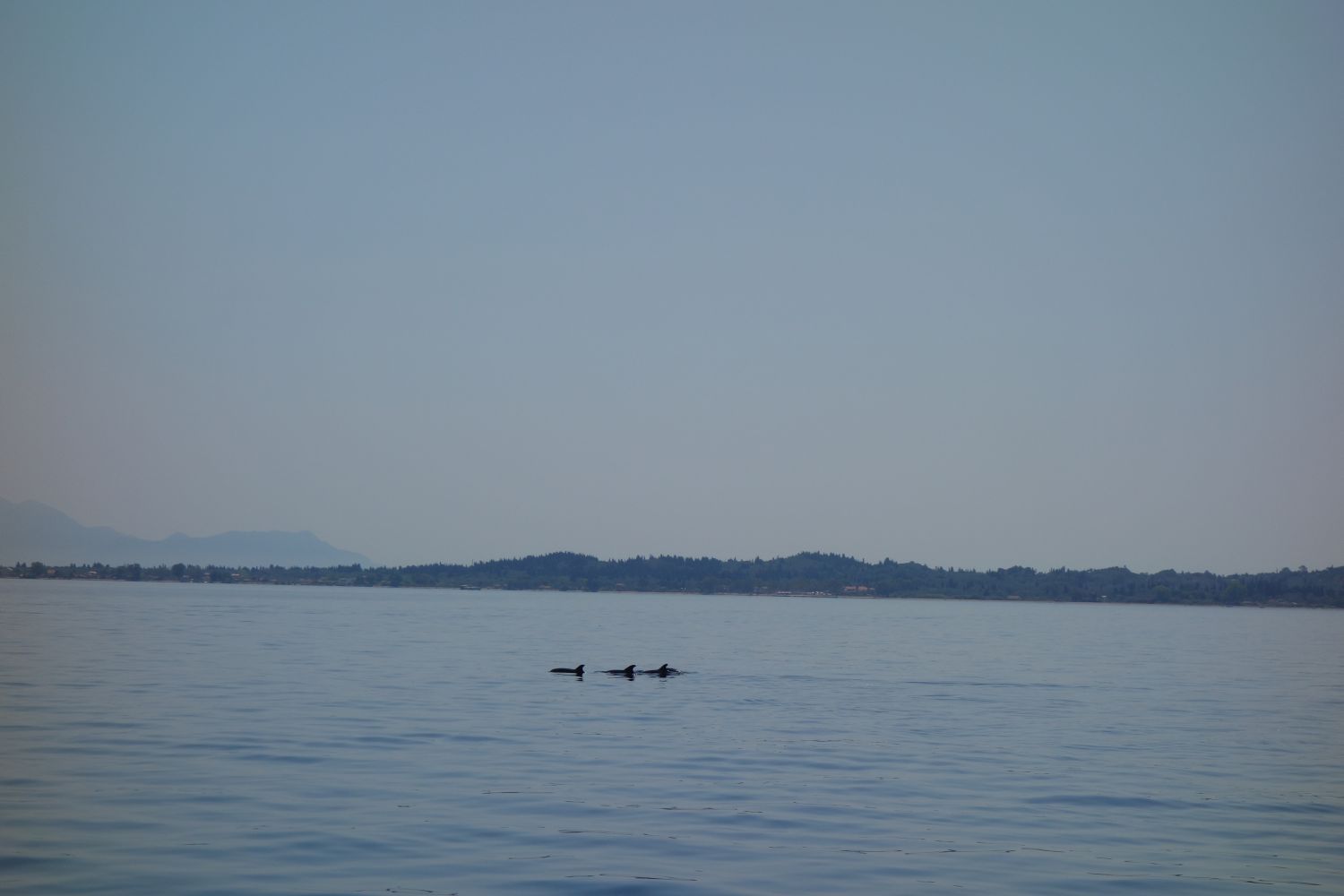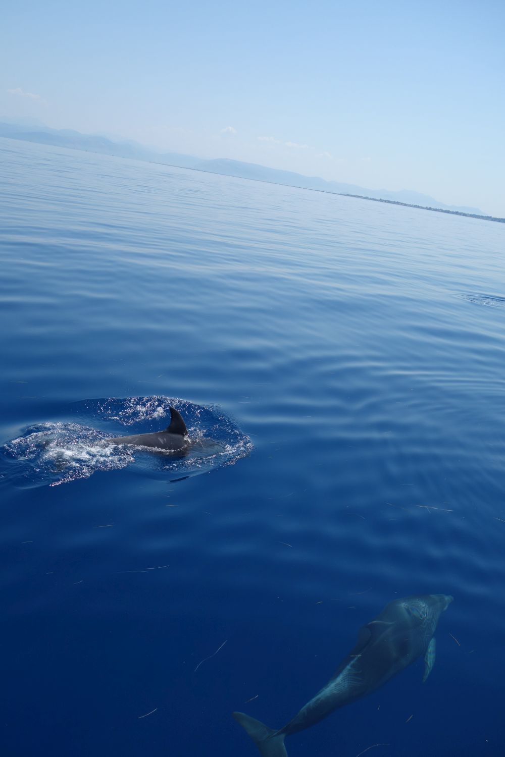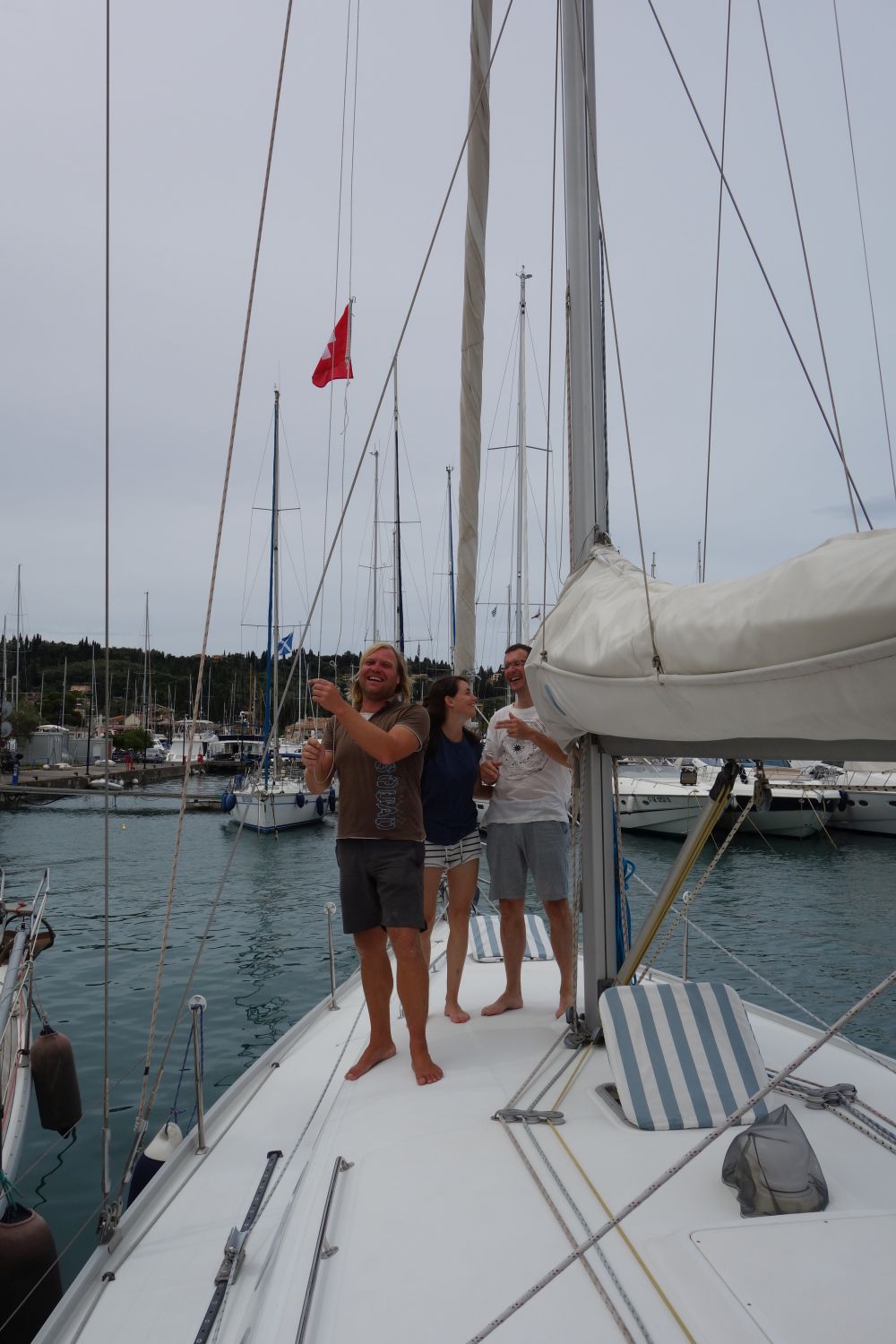 Aeolus war dann wohl etwas ausgepowert – am nächsten Tag gabs dann Wind aus keiner Richtung. Deswegen haben wir noch kurz ein „Kiste über Bord“-Manöver gefahren und eine Styroporkiste „gerettet“. Die in der Nähe jagenden Delfine 🐬 waren durch unser Manöver auf uns aufmerksam geworden und bedankten sich für unsere Säuberungsaktion und so durften wir ca. 4-10 Delfine für fast eine halbe Stunde um uns herumschwimmen sehen – das ist für diese Ecke Korfus ein sehr seltener und sehr beeindruckender Anblick! Da wir ein Date mit Elvis hatten, ging es zurück nach Gouvia.