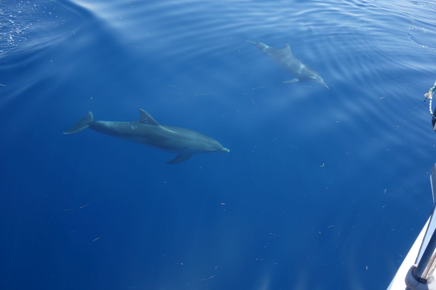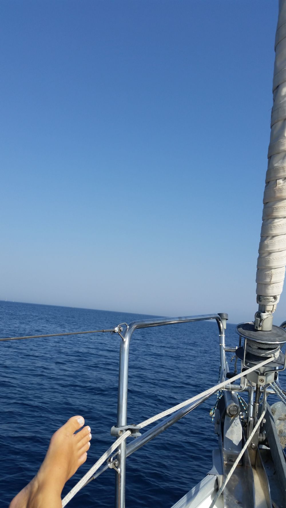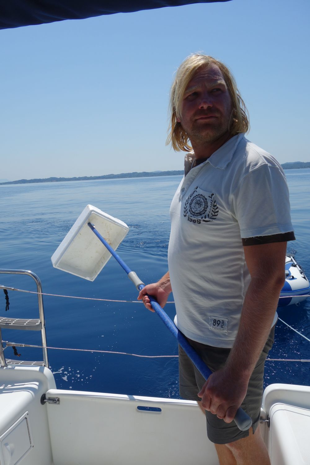Aeolus war dann wohl etwas ausgepowert – am nächsten Tag gabs dann Wind aus keiner Richtung. Deswegen haben wir noch kurz ein „Kiste über Bord“-Manöver gefahren und eine Styroporkiste „gerettet“. Die in der Nähe jagenden Delfine 🐬 waren durch unser Manöver auf uns aufmerksam geworden und bedankten sich für unsere Säuberungsaktion und so durften wir ca. 4-10 Delfine für fast eine halbe Stunde um uns herumschwimmen sehen – das ist für diese Ecke Korfus ein sehr seltener und sehr beeindruckender Anblick! Da wir ein Date mit Elvis hatten, ging es zurück nach Gouvia.