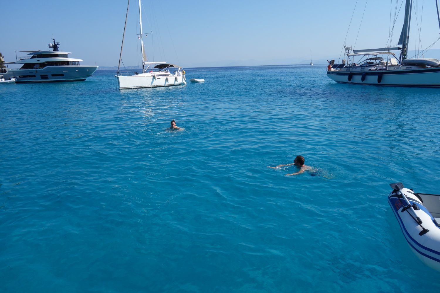 Am nächsten Tag dann das absolute Kontrastprogramm: Hart am Wind ⛵ waren wir trotz gerefftem Groß und gereffter Genua mit 7,4 Knoten Richtung Paxos unterwegs. Der Wind hatte die Wettervorhersage nicht gelesen und war etwas früher dran als erwartet. Und auch Lakka auf Paxos bot einen absoluten Kontrast zur verschlafenen Ankerbucht vom Vortag: Über 100 Yachten quetschten sich in die Bucht, zum Teil Bug an Heck mit Leinen an Land – der Wahnsinn. Ruhig war es hier nicht – und als Wellen und Wind dann weniger wurden, beschloss der Eigner einer Superyacht noch ein wenig Disco zu machen. An seinem Musikgeschmack muss er aber dringend noch arbeiten 😉