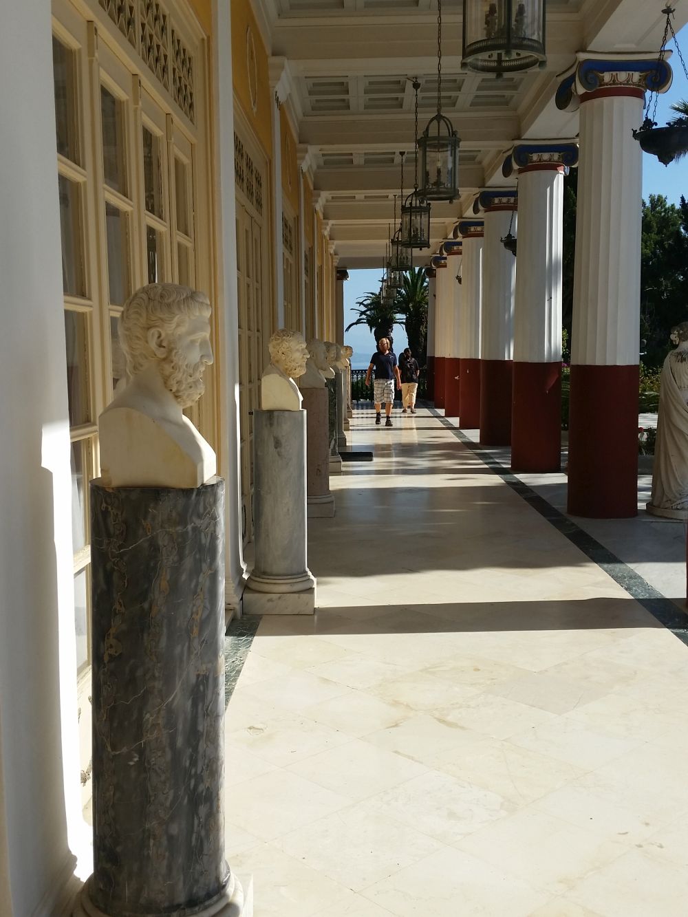Das Achilleion ist wirklich sehr schön – und wir waren auch rechtzeitig vor den Kreuzfahrer-Strömen hier. So konnten wir in Ruhe auf kaiserlichen Spuren wandeln. Und für 8 Euro Eintritt kriegt man hier eine wunderbare Aussicht und einen kostenlosen Audioguide.