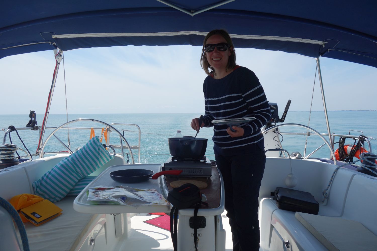 Wie das so ist beim Segeln: Was kaputt gehen kann, geht kaputt – und so müssen wir unseren Plan ein wenig ändern (ab nach Kroatien) und nochmal nach Porto Santa Margherita zurück, um das Rollreff der Genua zu reparieren. In Porto Santa Margherita kennen wir alles, wissen, an wen wir uns wenden müssen – und wissen auch, dass wir am Sonntag noch Teile bekommen.