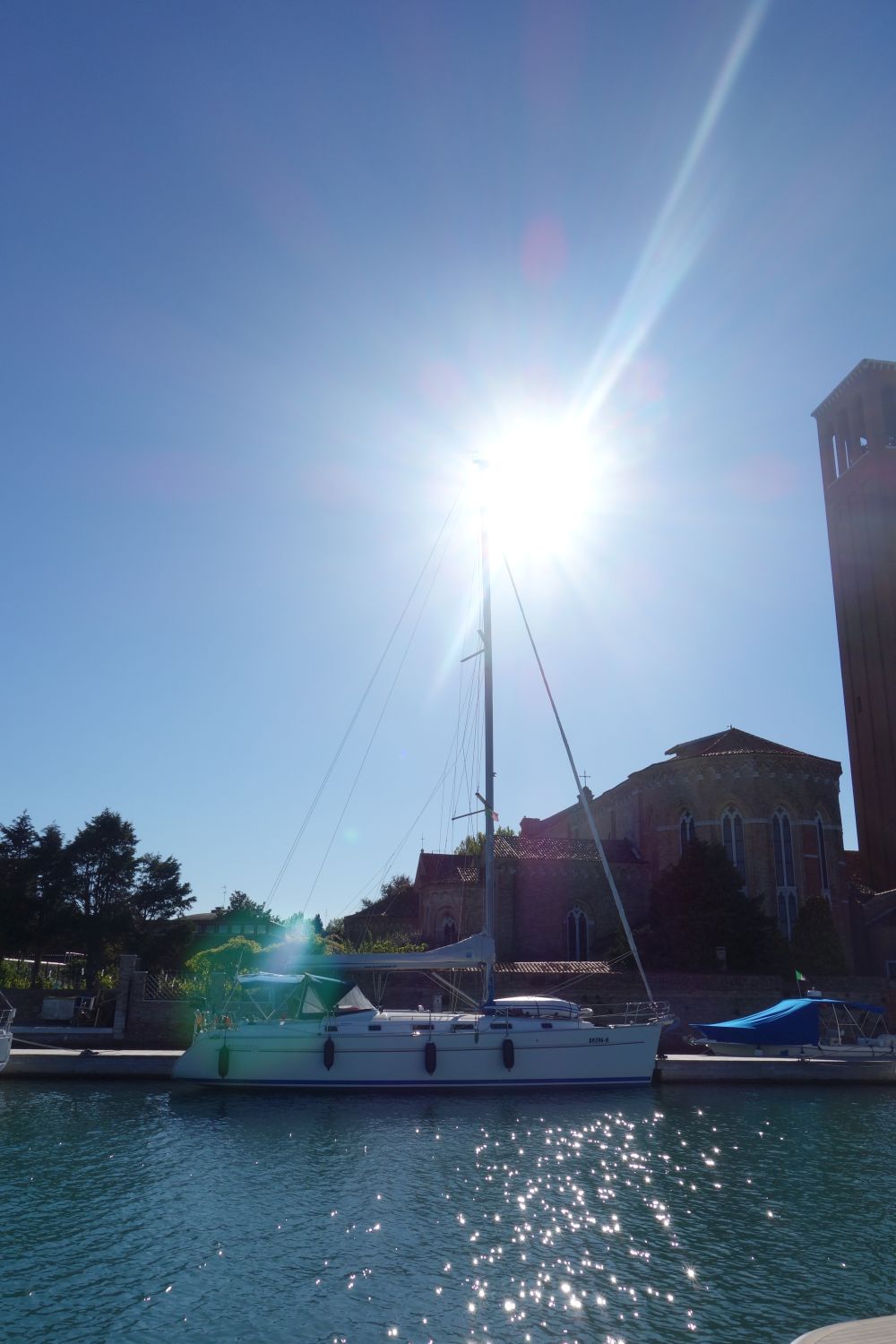 Und so haben wir uns ein bisschen in Venedig getummelt und uns die neu gebaute Marina Sant Elena angeschaut. Hier sind wir eines der kleinsten Segelschiffe. Nur die Dufour vor uns ist noch kleiner – aber sonst sind die Pötte hier eher 50 Fuß und länger.