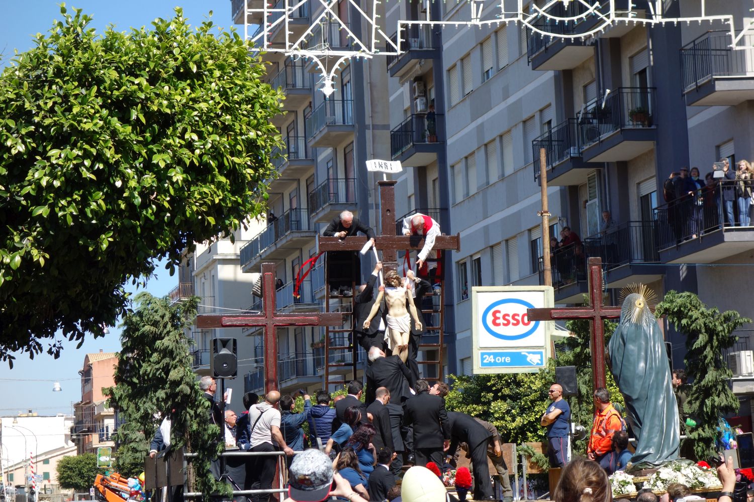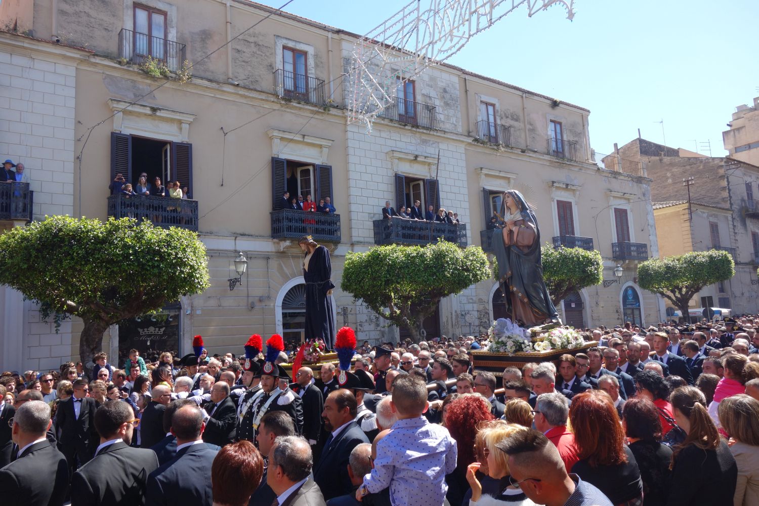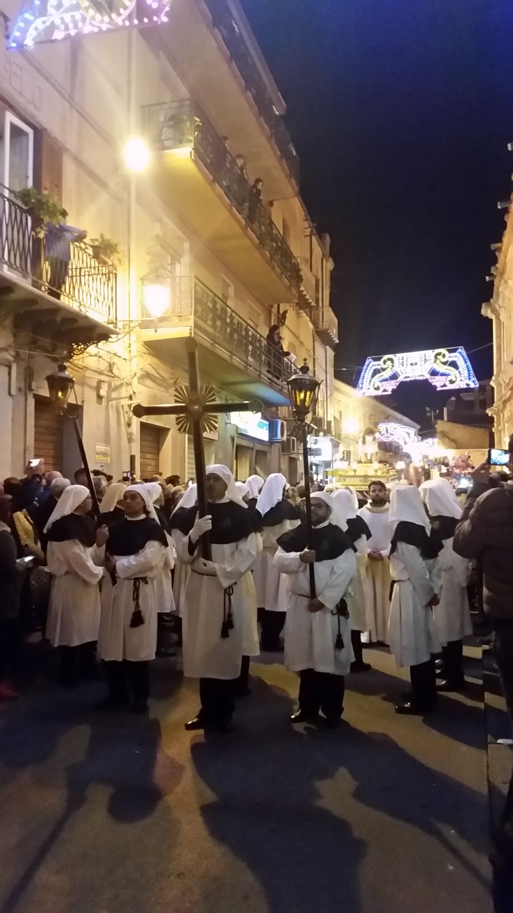 Am Karfreitag wurde dann um 3:30 (nachts) eine weitere Jesusstatue aus einer der vielen Kirchen getragen. Da ich aber ja schon um 21:00 eine Prozession gesehen habe und danach dann einfach eingeschlafen bin, musste der arme Jamie von der Sophie ganz alleine losziehen, um sich den nächtlichen Teil der Prozession anzusehen. Um 14:30 traf sich diese Prozession dann mit einer zweiten, die die Marienstatue begleitete. Viel los also – ich habe in Licata noch nie so viele Menschen zu Fuß gehen sehen. Trotz hoher Spritpreise wird hier üblicherweise alles mit dem Auto erledigt.