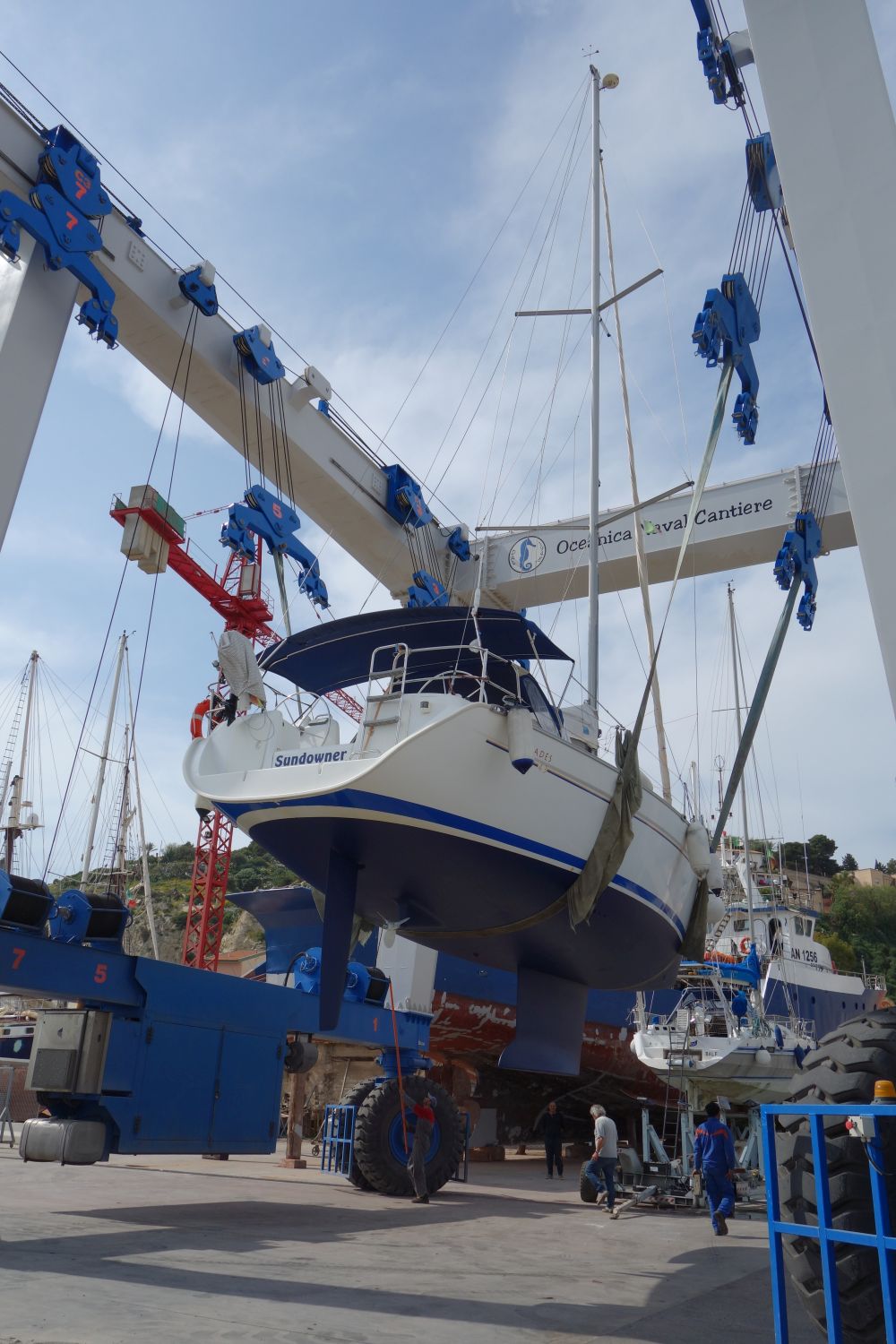 Unsere Sundowner wartete dann letzten Montag frisch gestrichen in Licata auf uns. Der J-Prop wurde dann auch noch gewartet – Giuseppe und seine Crew haben schnell noch einen Schmiernippel gebastelt und nun flutscht alles wieder. Ein Traum – schon die eine Meile Fahrt von der Werft in die Marina haben wieder richtig Lust auf Me(e/h)r gemacht.
